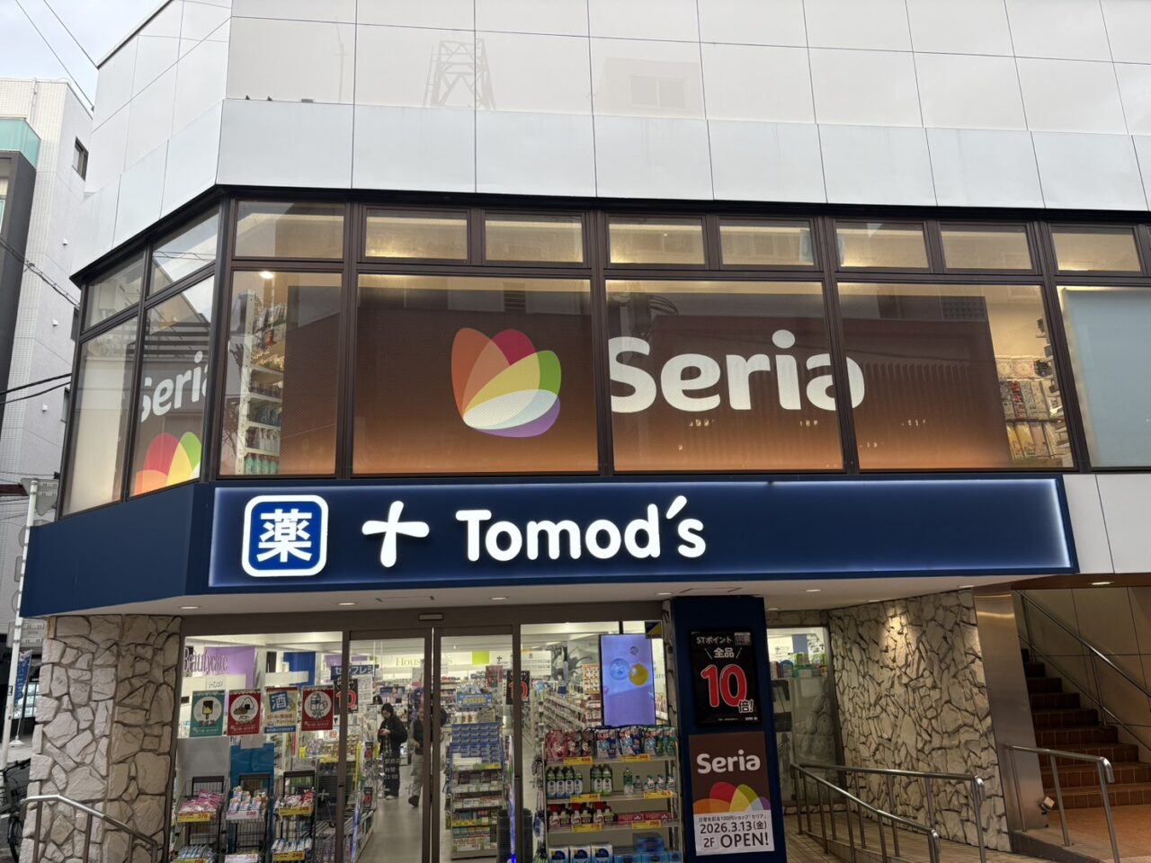 住吉書房が閉店してから、「跡地はどうなるんだろう」と気になっていた人も多いはず。1階にはドラッグストア「Tomod’s」が入り、2階にSeriaが入る形となります。